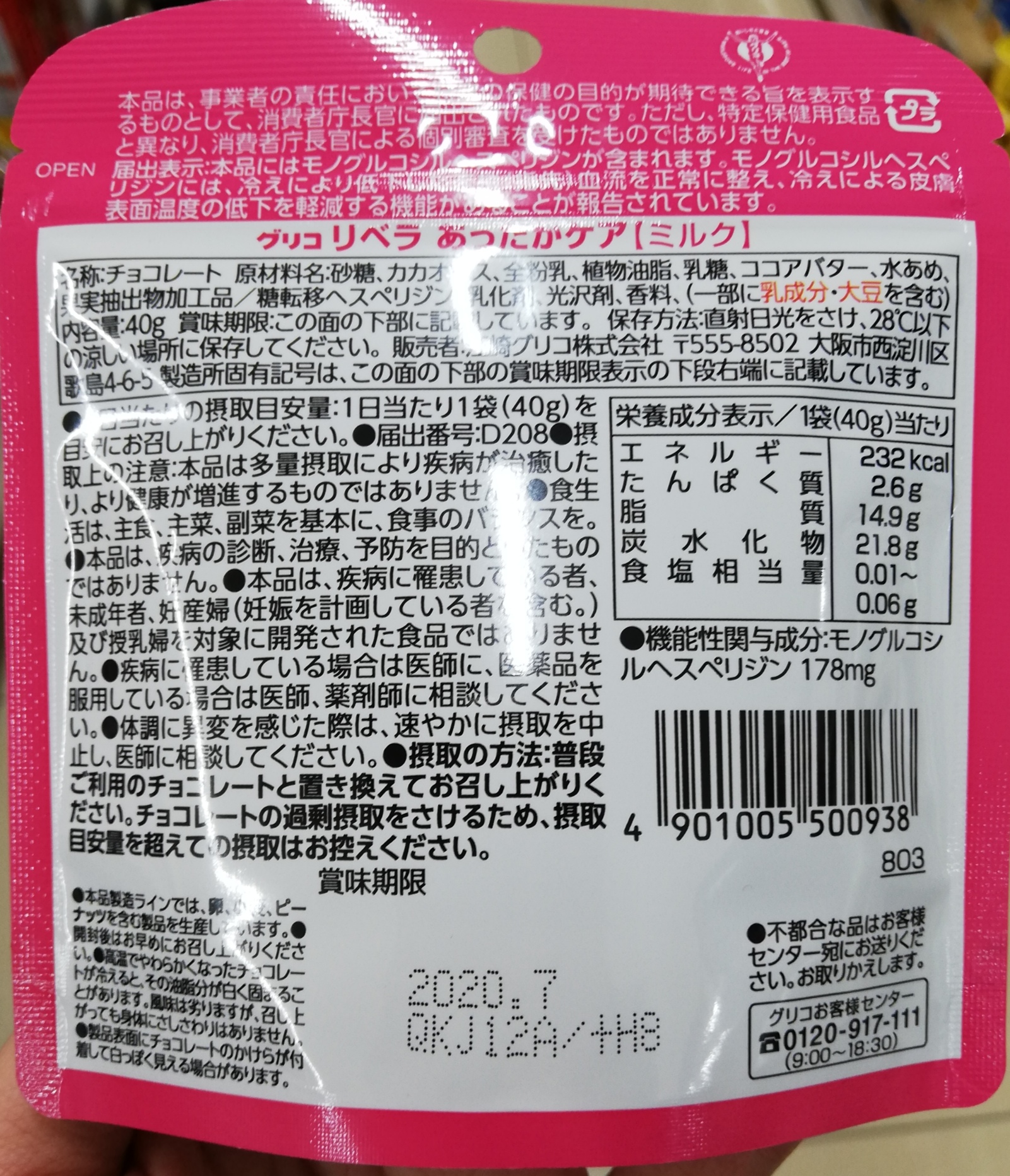 Glico在含有脂肪和糖的朱古力中添加了“可消化糊精”,即一種抑制脂肪和糖吸收的膳食纖維。它是第一種含朱古力的“功能性食品”,並不會改變朱古力味道。