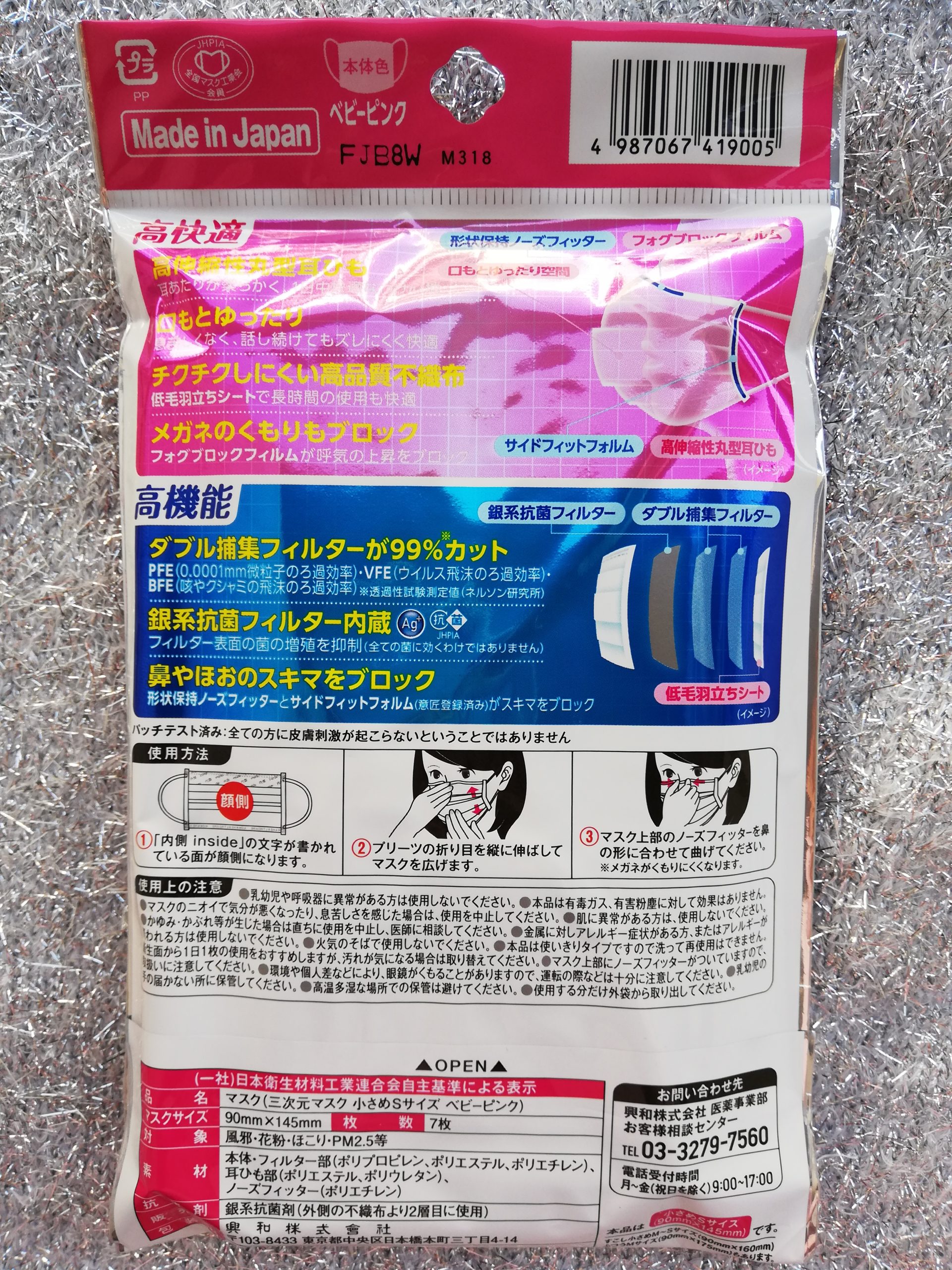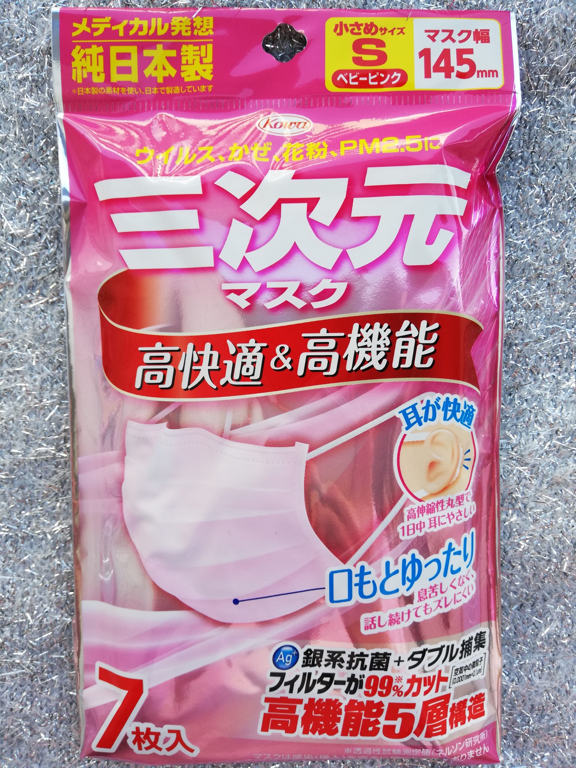 Kowa 三次元 粉紅色口罩 (Size S 145mm) 7枚