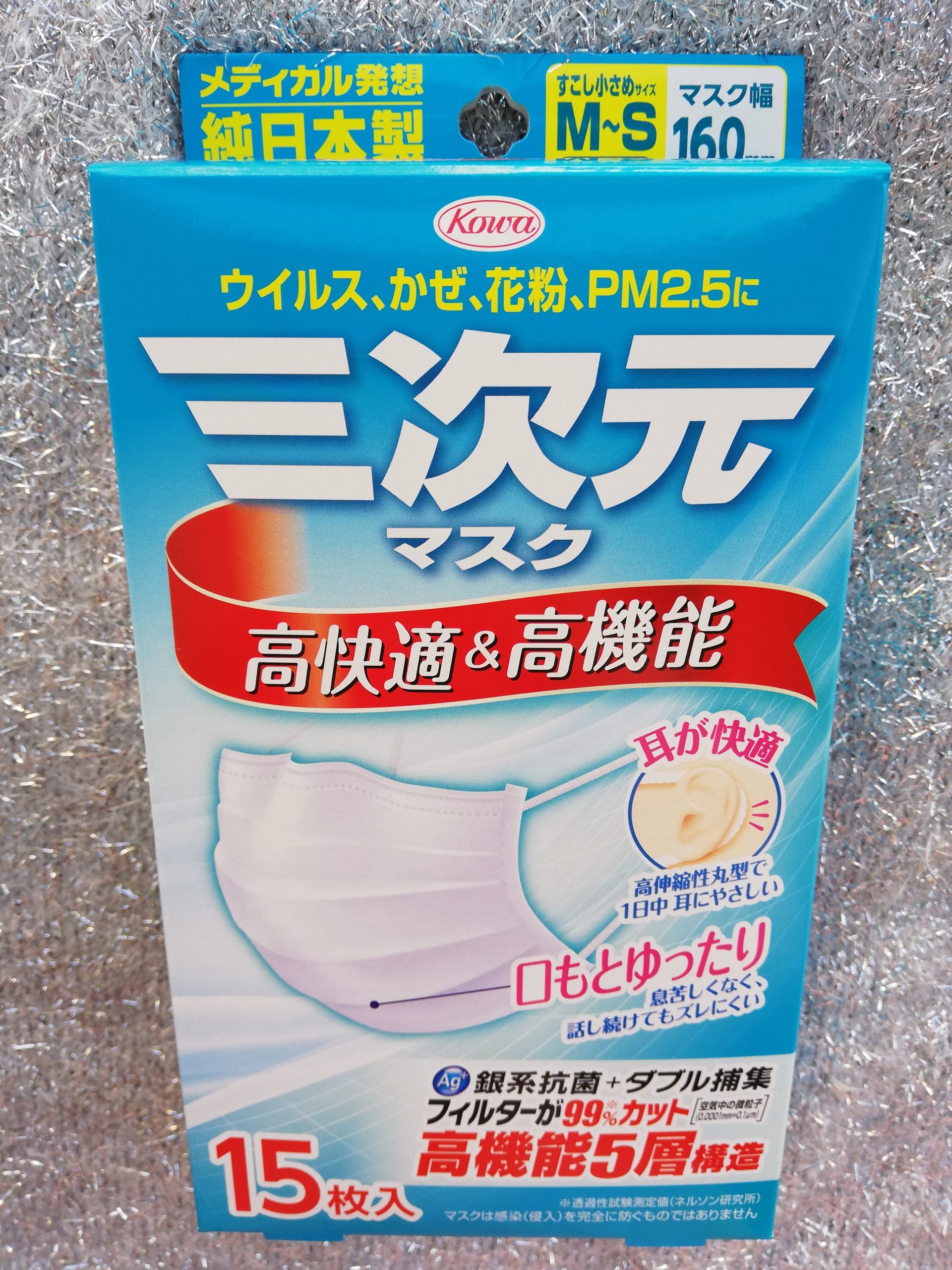 Kowa 三次元 白色口罩 (M~S 160mm) 15枚