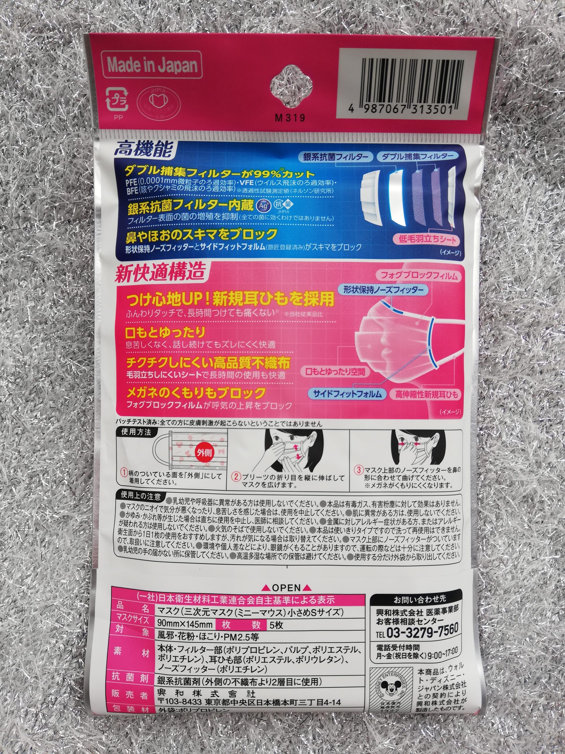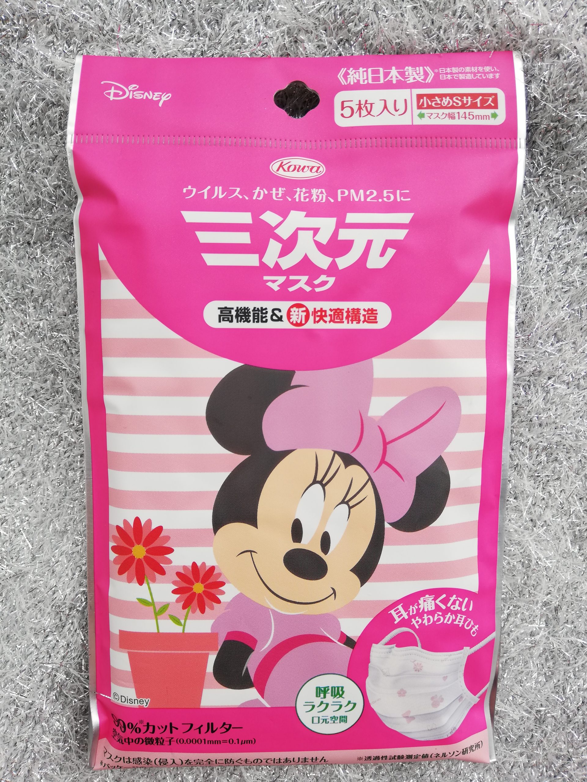 Kowa 三次元 迪士尼米妮印花高品質口罩 (Size S 145mm) 5枚
