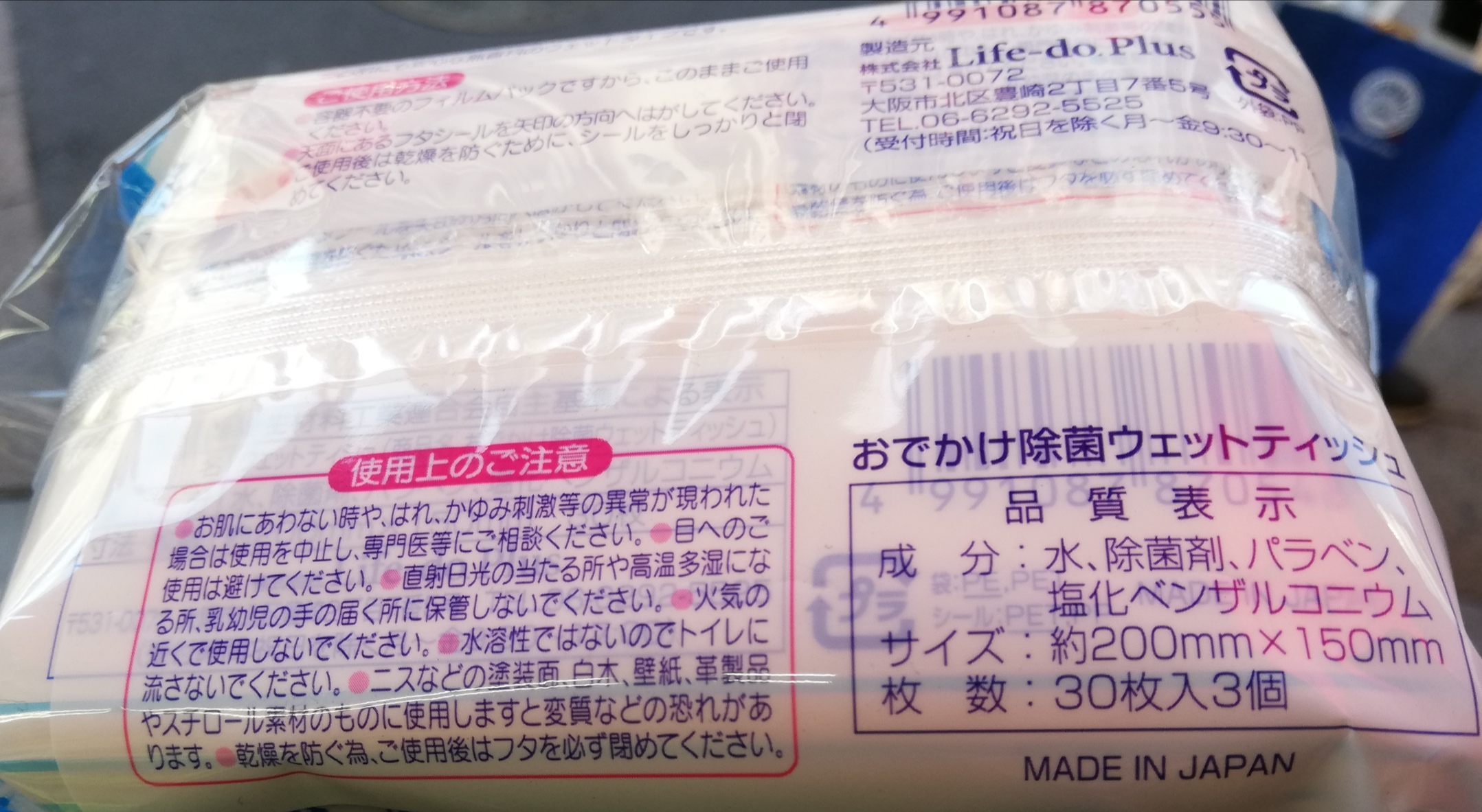 Life-do.Plus 除菌濕紙巾 (含消毒酒精成份) 30枚 X 3個