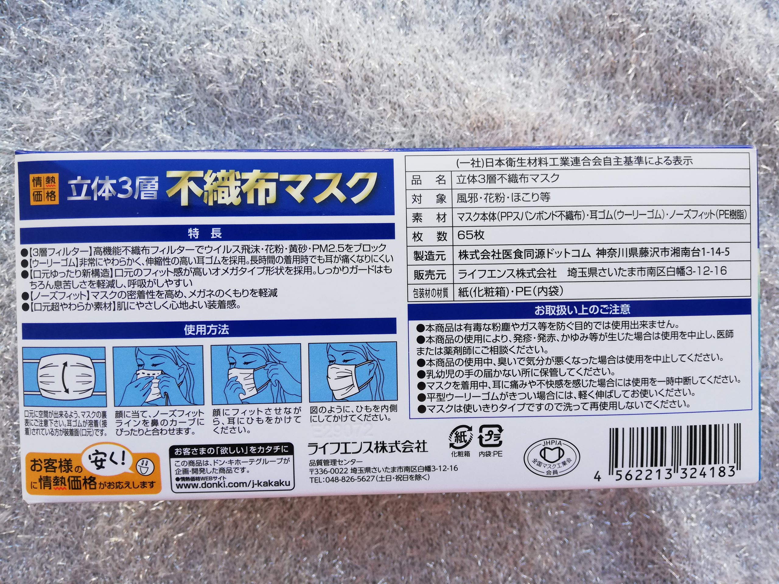 搶先評價 “Life science 立体3層不織布白色口罩 (大人用 165mm) 65枚”
